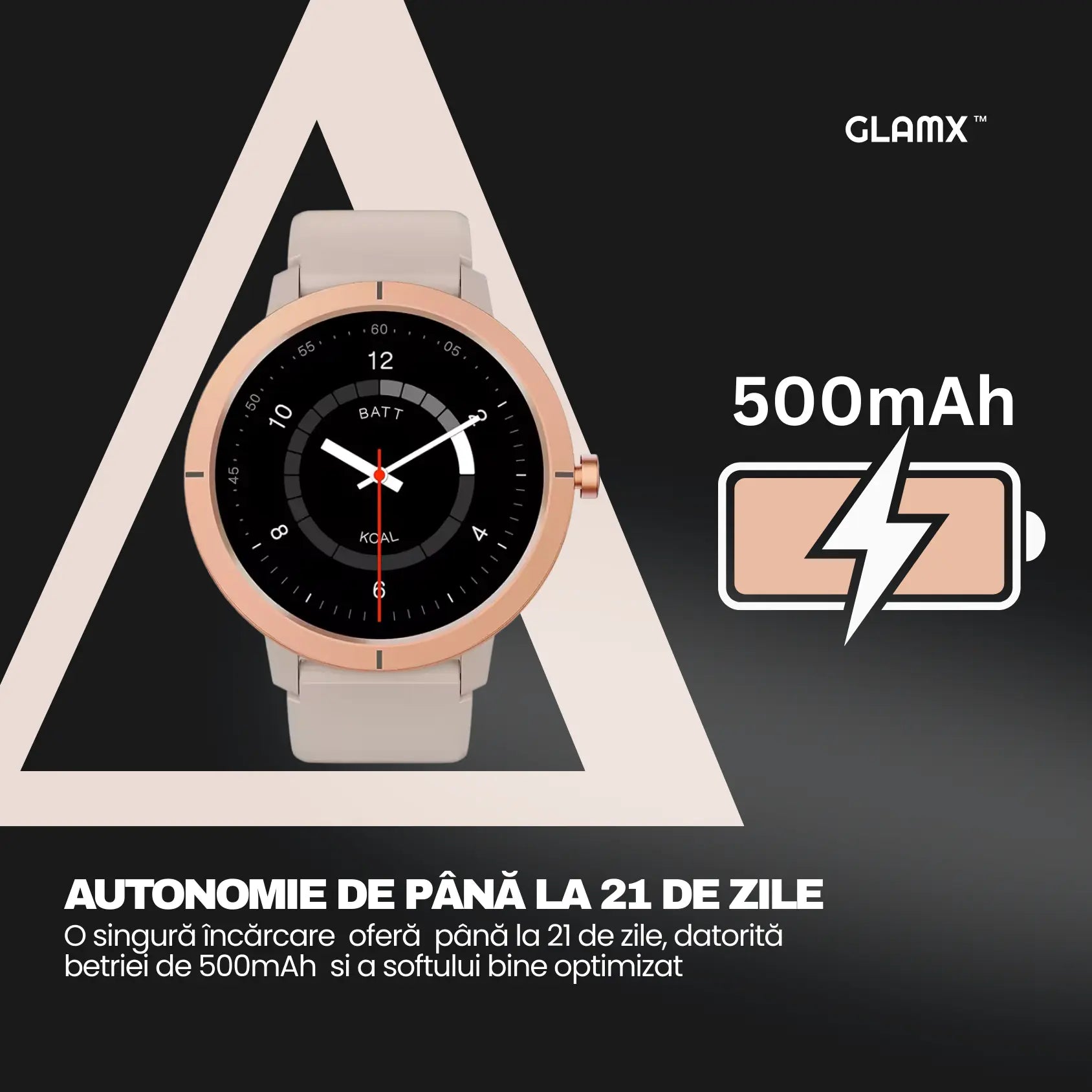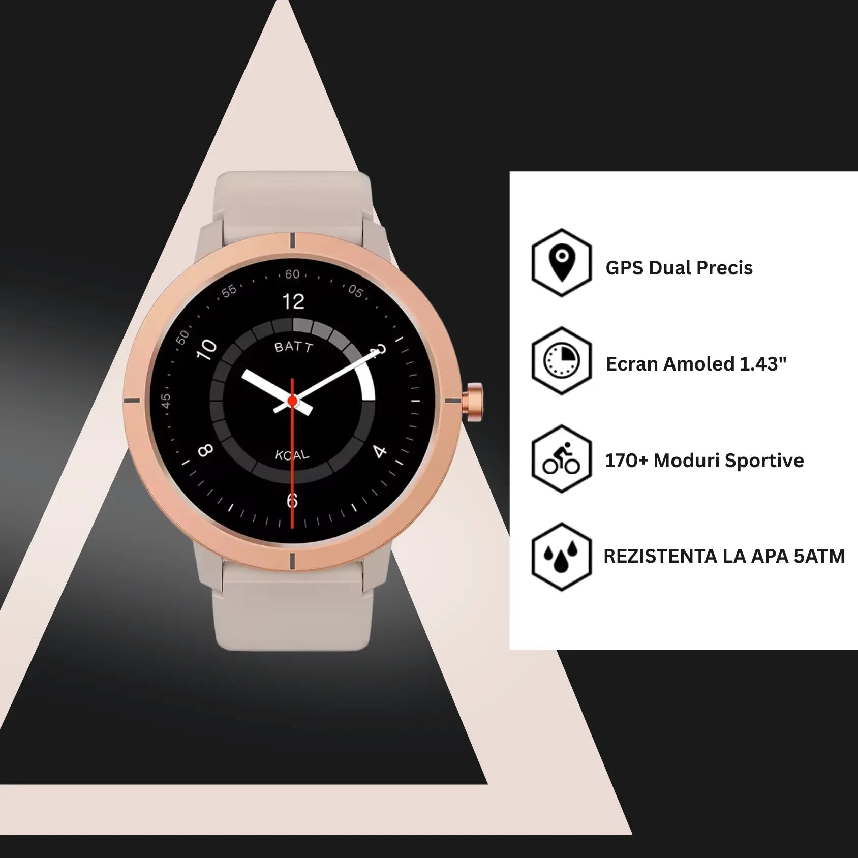 Funcții Smart Apeluri Bluetooth, notificări WhatsApp, SOS, Muzică, Asistent Vocal.