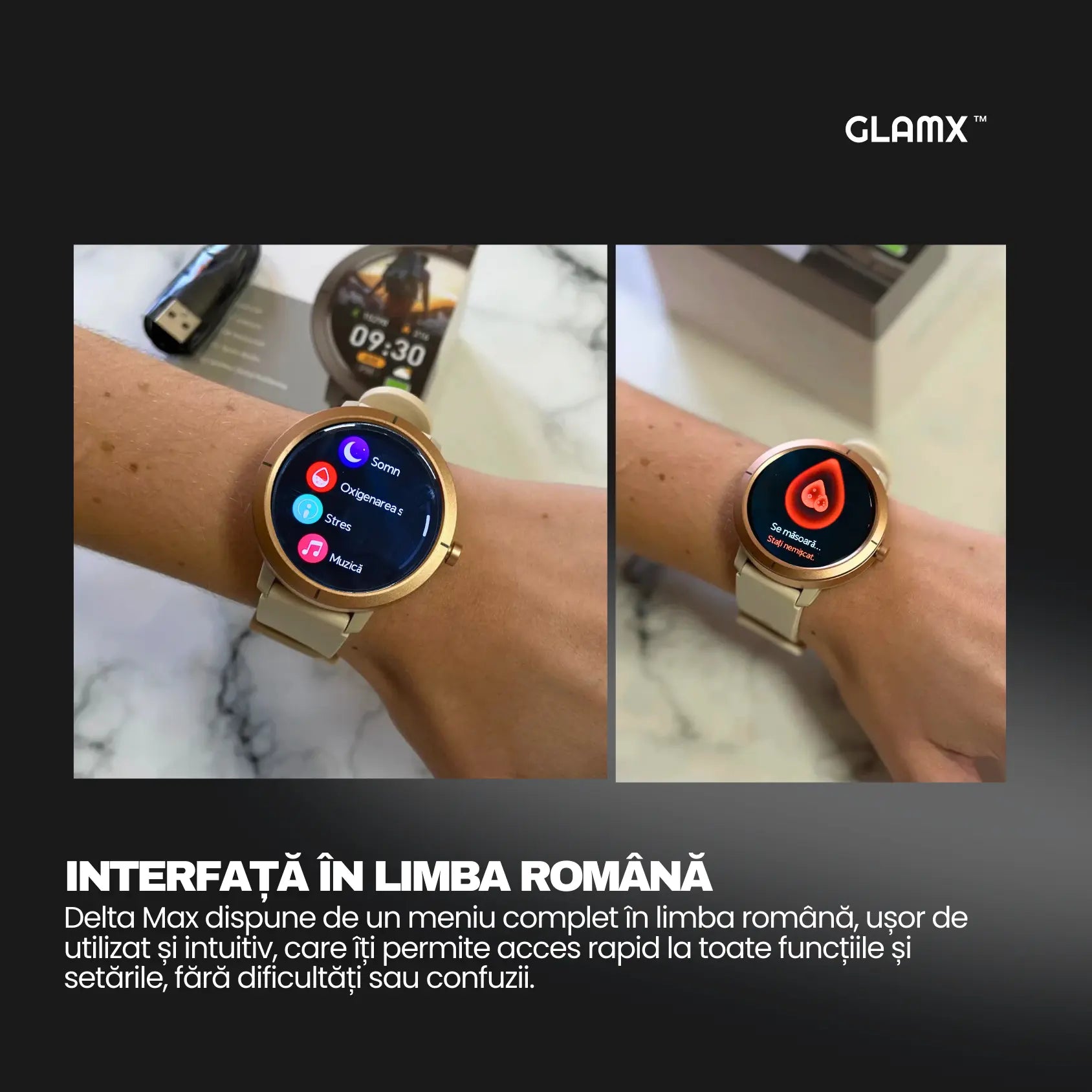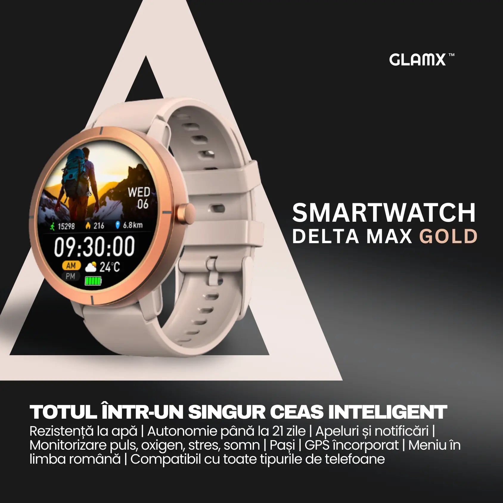 💓 Sănătate Proactivă 24/7: Echipat cu senzorul de înaltă precizie VC30F-S, Delta Max Gold monitorizează continuu pulsul, oxigenul din sânge (SpO2) și stresul, oferind totodată o funcție dedicată pentru monitorizarea sănătății feminine.