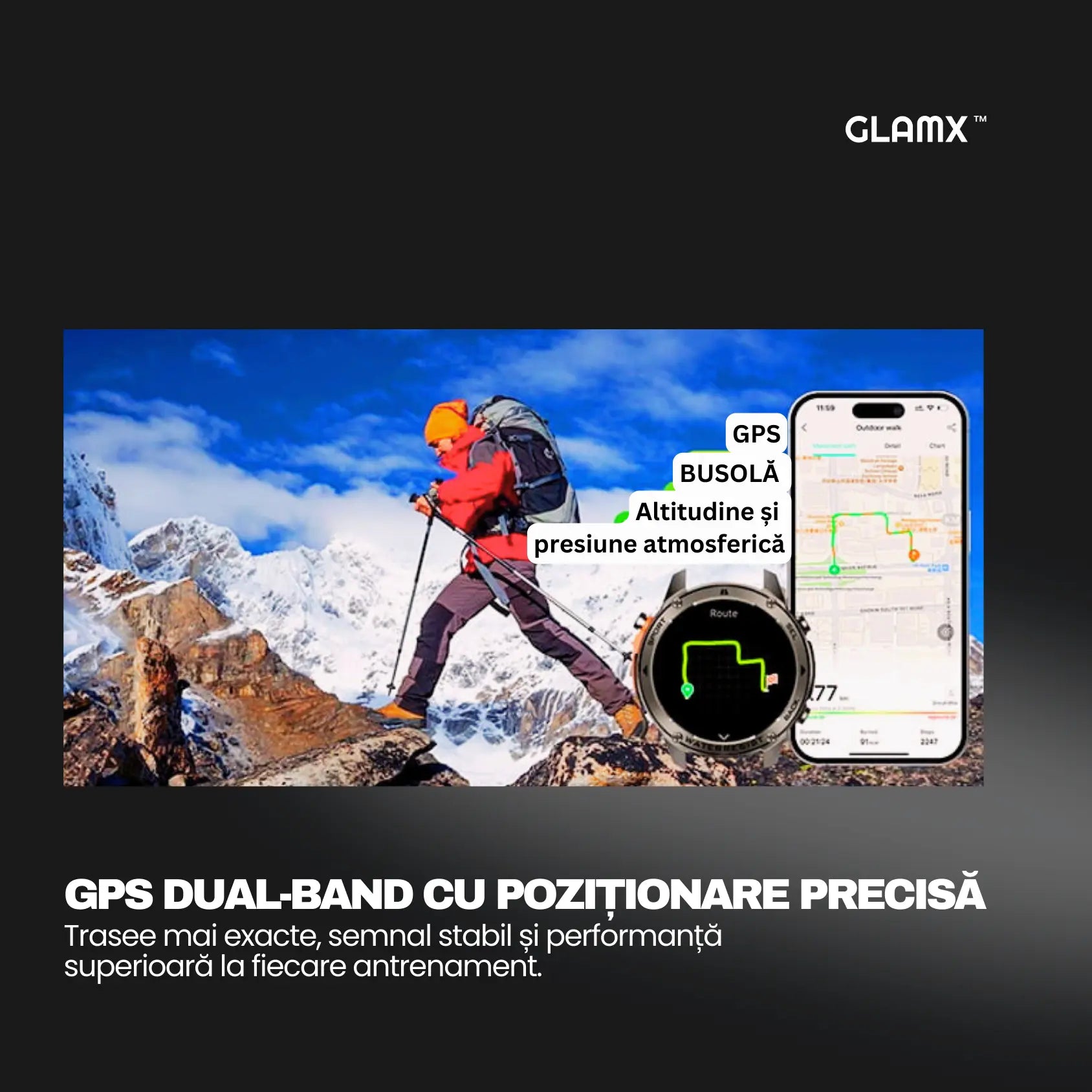 Navigație GPS Dual L1+L5 cu 6 sateliți + Barometru & Altimetru.