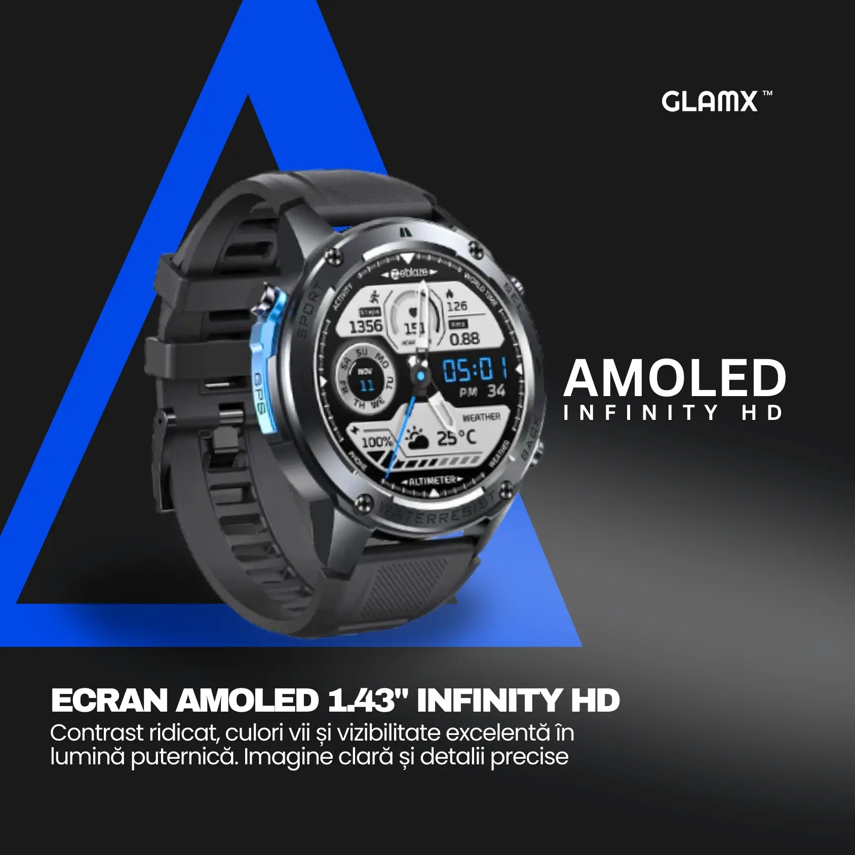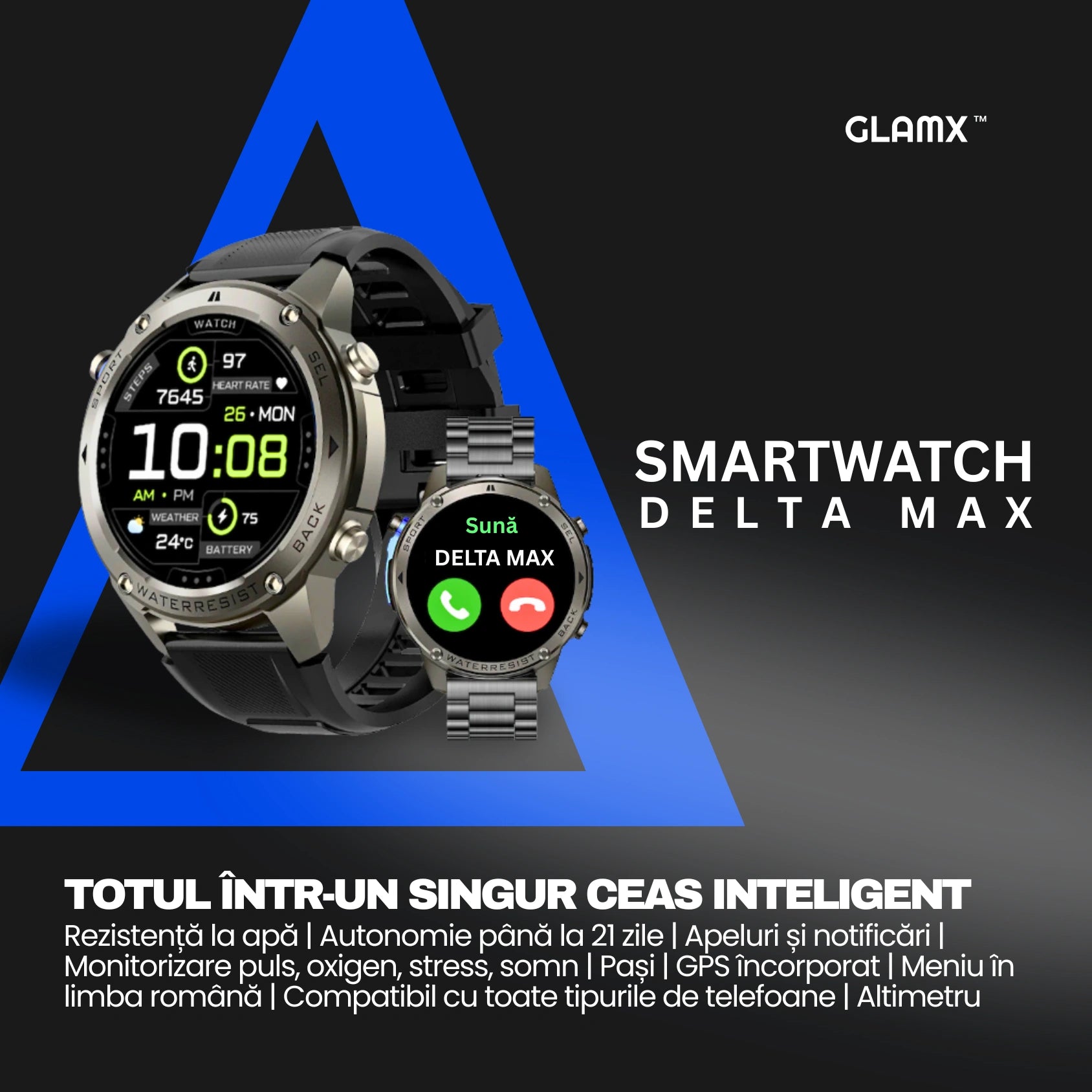 GLAMX DELTA MAX este un smartwatch premium construit sa reziste in timp. Iti oferim 2 ani garantie completa si livrare în 24 de ore in toata tara.